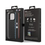 BMW-IPHONE 14 PRO MAX – جلد PU أسود مجموعة M حافظة PU نمط سداسي وشريط بولي يوريثان ناعم وشعارات معدنية