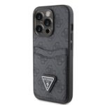 Guess حافظة جلدية PU مع فتحة بطاقة مزدوجة 4G شعار المثلث المزدوج – iPhone 15 Pro Max / 15 pro
