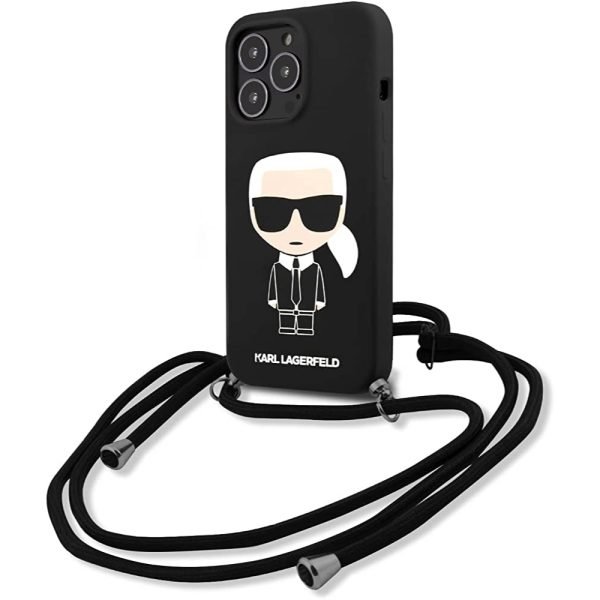 Black Karl Lagerfeld Liquid Silicone Hard Case With Cord Ikonik For iPhone 13 Pro Max