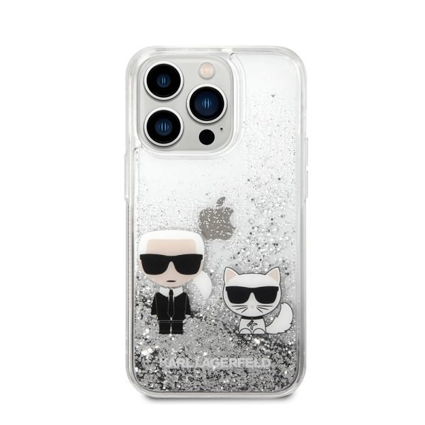 Silver Karl Lagerfeld – iPhone 14 PRO MAX Compatibility Liquid Glitter Silicone Case Karl and Choupette Protector