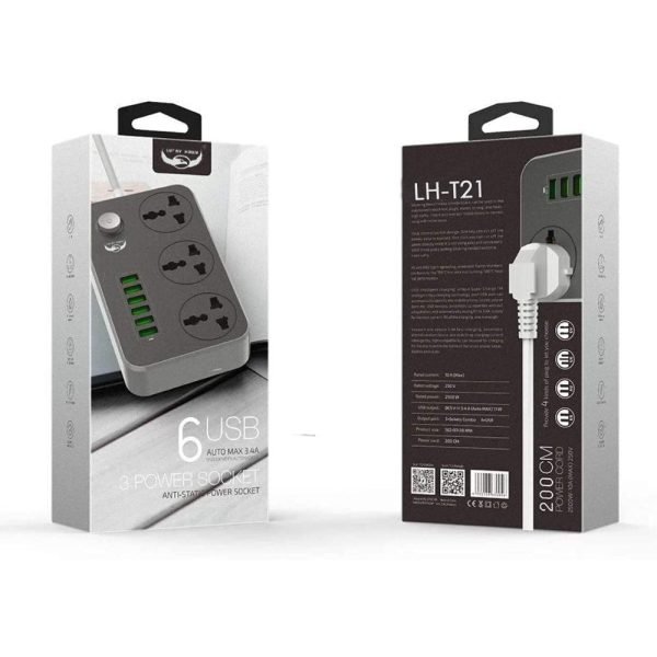 LDNIO Extension Lead with USB Ports 3 Way Outlets 6 USB Ports Surge Protection Power Strip UK Power Socket with 2 Meter Bold Extension Cord with Fuse and Shutter Power Strips Universal Socket