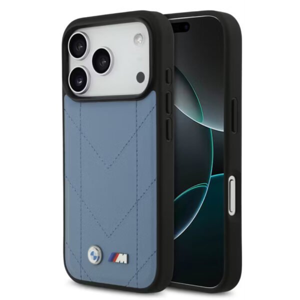 BMW MagSafe PU Quilted Leather Case with Metal Logos Slim Profile Drop Protection Eco Friendly Packaging for iPhone 17 Pro Blue