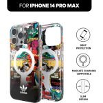 - CLASSIC ADIDAS STYLE: Get fashionable smartphone protection that evokes old-school spirit. Our adidas Originals iPhone 14 Pro Max compatible clear case features an Originals themed print as well as a MagSafe compatible design so you can use magnetic accessories with the case attached for added security