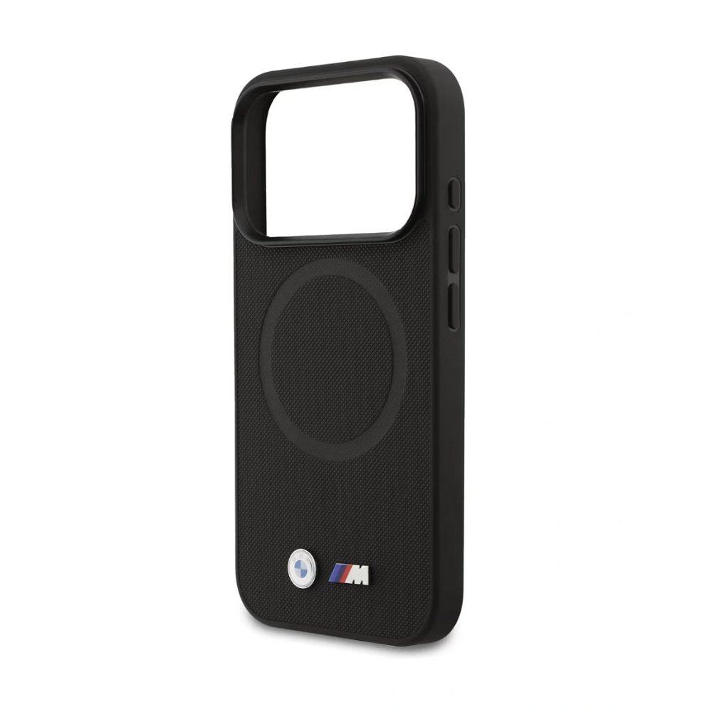 BMW iPhone 17 Pro Back cover case MagSafe Full Wrapped Leather Case With Metal Logos Black