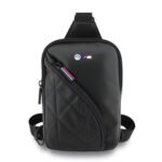 BMW PU Leather & Carbon Crossbody Bag with Metal Logos High Quality Materials Adjustable Strap Black