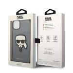 CG MOBILE IPHONE 14 – PU LEATHER SILVER CASE WITH KARL HEAD PATCH – KARL LAGERFELD