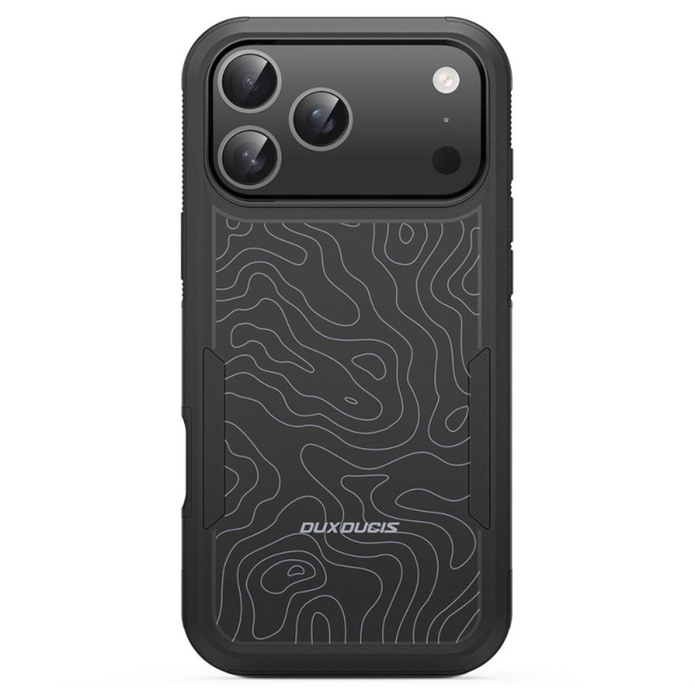 The DUX DUCIS SHLD series for iPhone 17 Pro Max focuses on uncompromising military protection and bold design. Made from flexible TPU and rigid PC with a double-layer structure, it absorbs shocks from up to 3 metres while protecting the screen and camera. Its UV-printed back features a modern topographical motif, reinforcing its visual identity. MagSafe compatible thanks to its 36 integrated magnets, it guarantees a solid hold and smooth recharging. Its non-slip matt texture and internal heat dissipation system complete this robust package.
