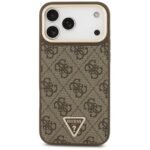 Guess 4G Triangle Logo & Big Strap Metal Buttons MagSafe Case for iPhone 17 Pro Max Brown