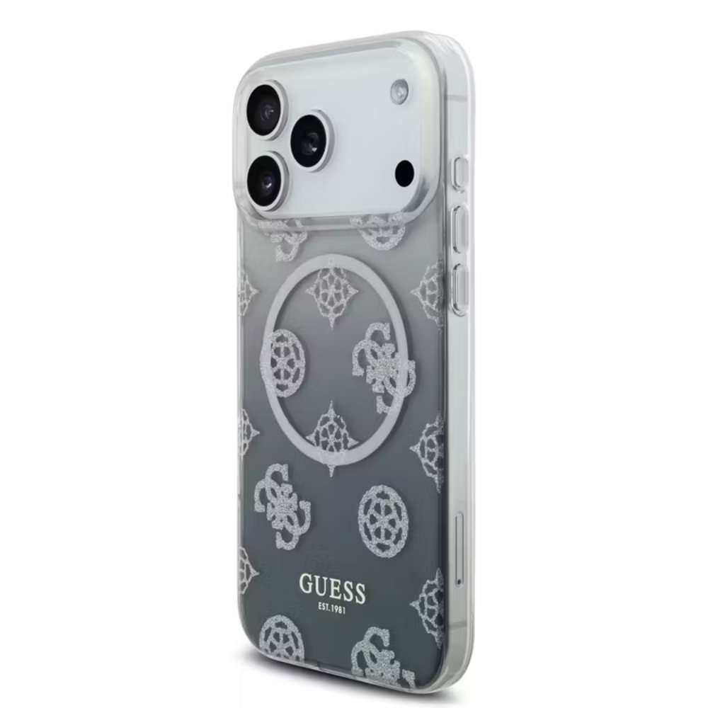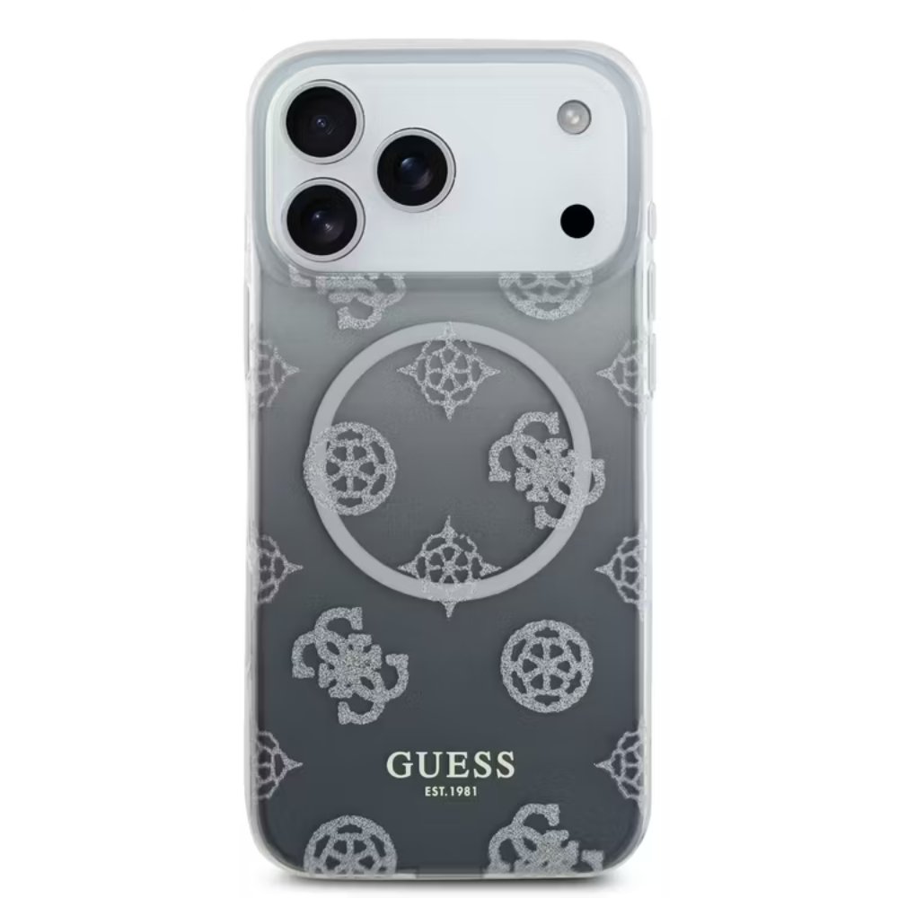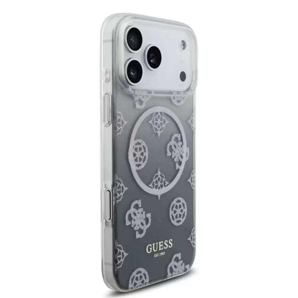 GUESS Guess MagSafe PC & TPU Case with Gradient Peony & Glitter Pattern for iPhone 17 Pro Max Drop Protection Sustainable Packaging Slim Profile Black