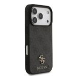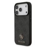 The Guess MagSafe 4G Faux Leather iPhone 17 Pro Max Case in Black is designed to offer both style and protection. The case is crafted from high-quality faux leather, offering a durable yet lightweight design that’s comfortable to hold for extended periods. It’s ideal for everyday use thanks to its slim profile and drop-protection features that ensure your iPhone stays safe from accidental drops without adding any extra bulk. This case is compatible with MagSafe accessories, allowing you to easily charge your phone without having to remove the case. Its snap-on design ensures a snug and secure fit on your device, allowing you to use it with confidence. The case also features the classic Guess logo, enhanced with glossy Strass detailing that adds a touch of luxury and elegance to your iPhone. In addition to its stylish and functional design, the Guess MagSafe 4G Faux Leather Case comes in eco-friendly packaging, reflecting Guess’ commitment to sustainability and environmental responsibility. Whether you’re looking for an accessory to complement your iPhone’s design or seeking reliable protection, this case offers the best of both worlds.