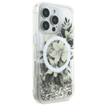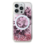 GUESS Magsafe Liquid Glitter Hard Case with FLOWER Design for iPhone 16 Pro MAX, Drop Protection, Easy Snap-On