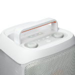 The JBL PartyBox Club 120 turns any space to party, and vibe. Powerful JBL Pro Sound fills the air while an entrancing lightshow of starry lights, cool light trails, and strobe effects syncs to your beat. Instantly pair any Bluetooth device and stream your favorite party playlist, or use the mic and guitar inputs to share your own sound. Either way, you can steer the party’s flow with fun interactive party effects using the JBL PartyBox app. A folding ergonomic handle makes the PartyBox Club 120 easy to take with you anywhere, and the splash-proof construction means it won’t be troubled by a little rain. It delivers up to 12 hours of playtime—and if the party’s still flowing by then, just swap out the replaceable battery and keep the music and lights going strong. For an even bigger time, stereo pair two JBL PartyBox Club 120s for a wider soundstage, or use the JBL PartyBox app to connect multiple JBL Auracast-enabled speakers wirelessly. Roll up to the party with the JBL PartyBox Club 120.