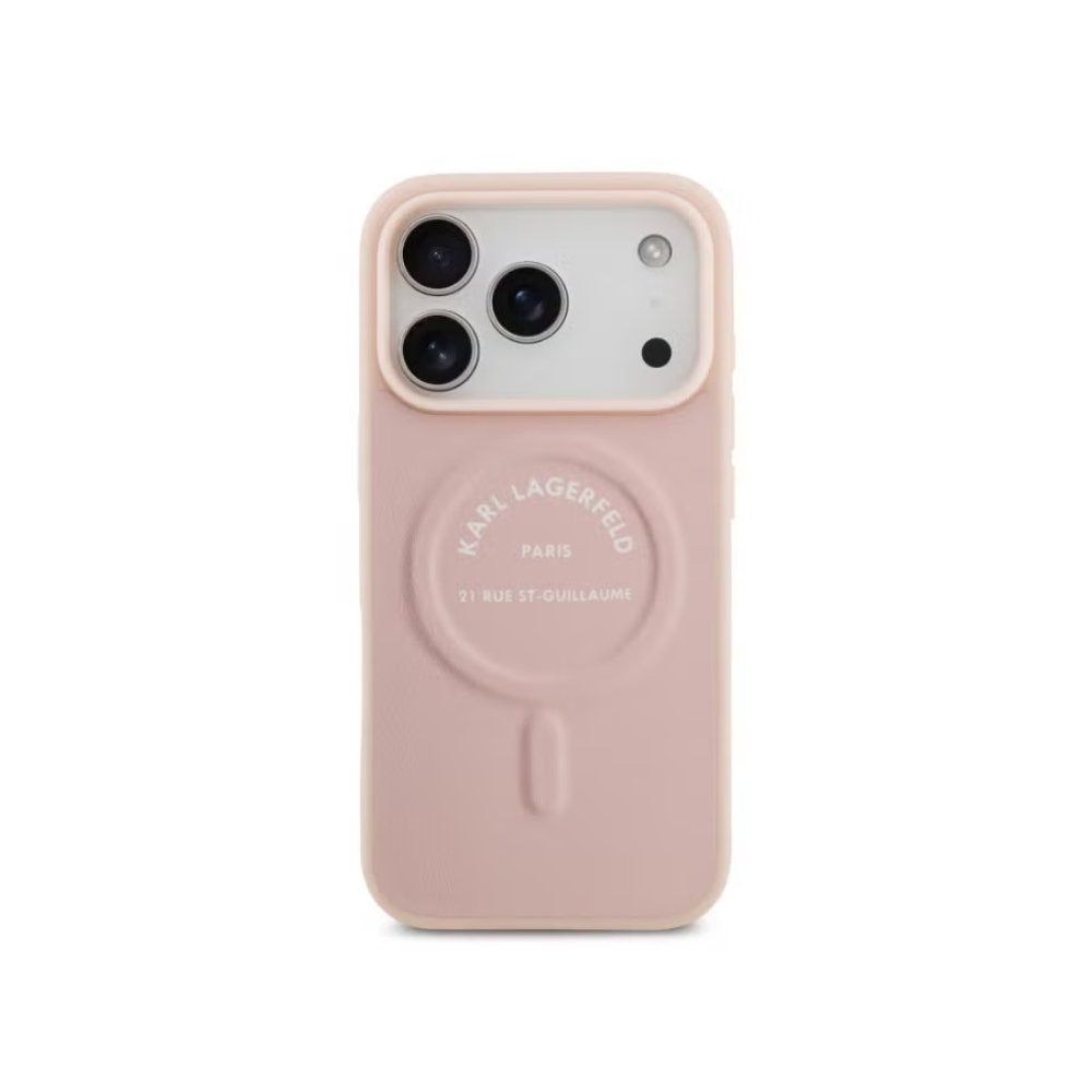 The Karl Lagerfeld MagSafe PU Case with Karl RSG Logo Buttons in Pink combines utility, style, and functionality in a stylish package for your iPhone 17 Pro Max. It’s MagSafe compatible and has a compact design, so it easily attaches and aligns with your device and accessories. Its lightweight design and comfy grip make it a great daily companion. It offers both convenience and style. With its simple snap-on installation design, it fits your phone snugly without adding extra bulk. The case provides reliable drop protection. It keeps your device sleek. Plus, it protects against bumps and drops. The packaging focuses on sustainability. It reflects a modern, eco-friendly approach. This design reduces environmental impact while still looking good. The Karl Lagerfeld MagSafe PU Case with Karl RSG Logo Buttons blends high-end style with dependable performance. Its protective features and Karl Lagerfeld’s unique design make it perfect for those who value both fashion and function.
