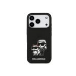 Karl Lagerfeld Liquid Silicone iPhone 17 Pro Max Case with Karl & Choupette Sketch Black