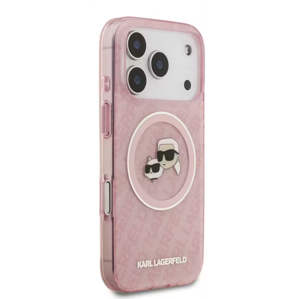 Karl Lagerfeld MagSafe IML Glitter & KL Repeated Case with Karl & Choupette for iPhone 17 Pro Slim Profile Sustainable Packaging Lightweight Design Pink