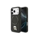 Karl Lagerfeld PU Leather Case with Karl & Choupette Head Pins for iPhone 17 Pro Max Black