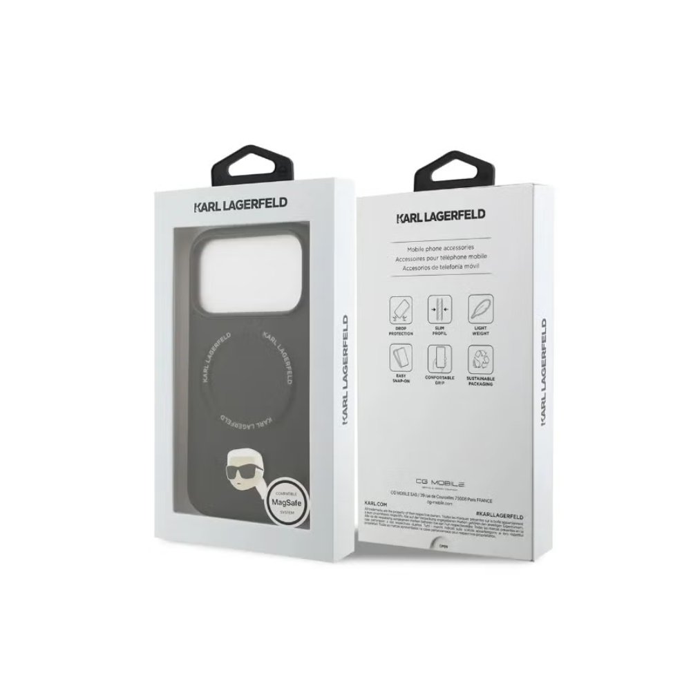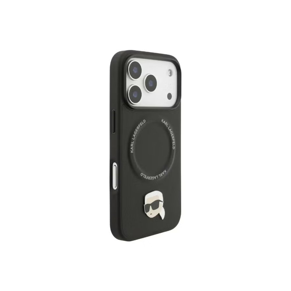 The Karl Lagerfeld PU Leather Case with Karl & Choupette Head Pins for iPhone 17 Pro Max is designed to combine premium style with reliable protection. Crafted from high-quality PU leather, this designer case reflects Karl Lagerfeld’s iconic fashion aesthetic while ensuring a sophisticated look. The case showcases exclusive Karl & Choupette head pins that add a distinctive touch, making your iPhone 17 Pro Max stand out with luxury and elegance.