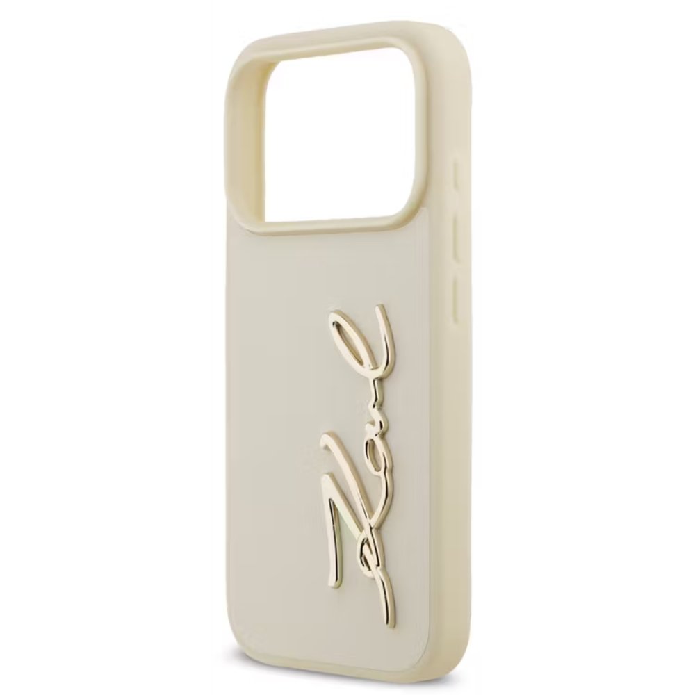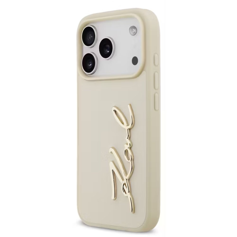 Karl Lagerfeld PU Leather Case with Karl Script Logo & Buttons for iPhone 17 Pro Max Slim Profile Sustainable Packaging Comfortable Grip Lightweight Design Beige
