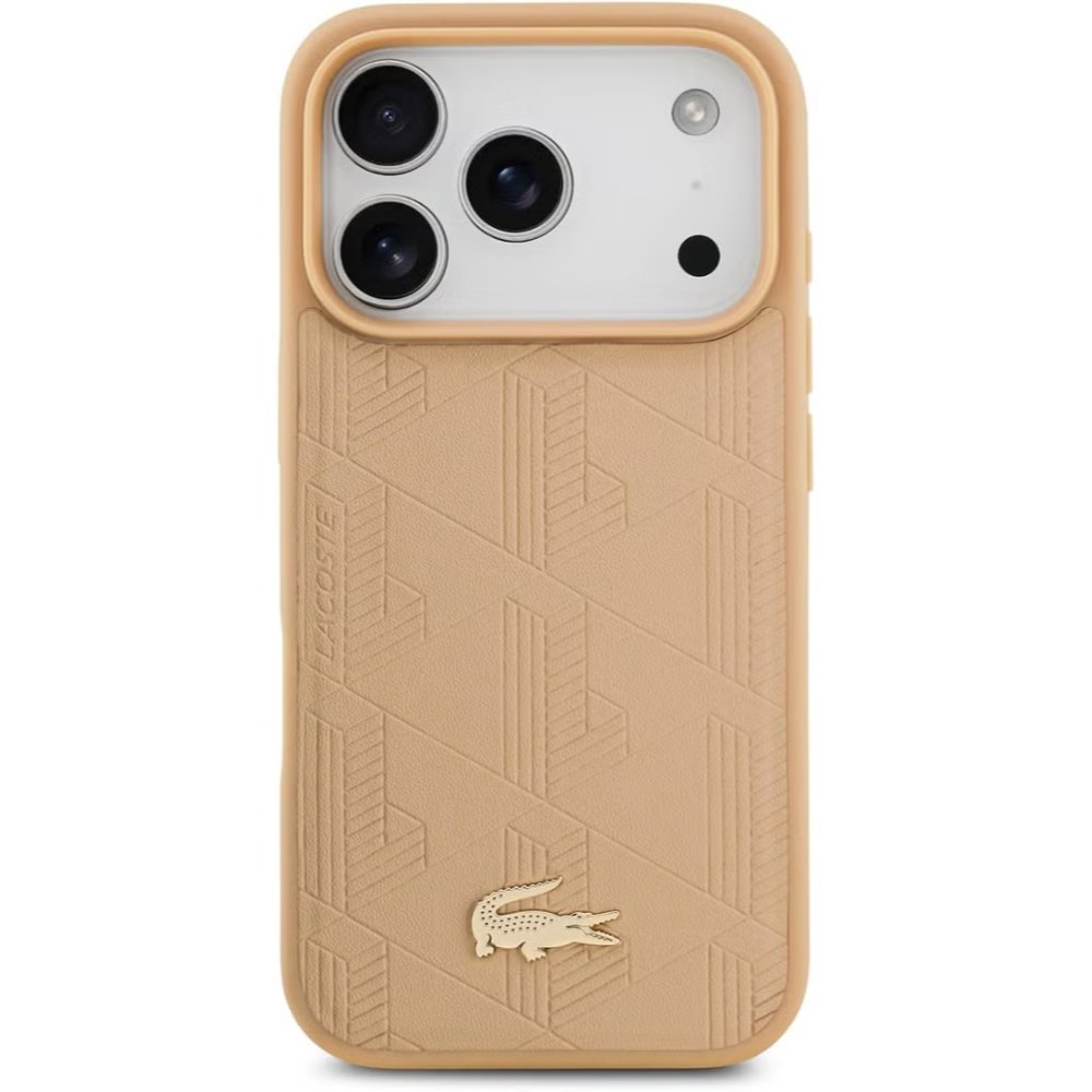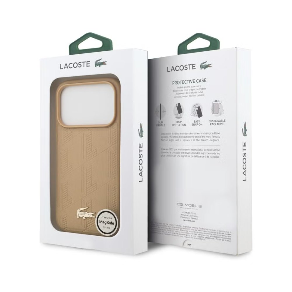 LACOSTE Lacoste MagSafe PU Leather Case with Monogramme & Gold Logos for iPhone 17 Pro Max Drop Protection Sustainable Packaging Slim Profile Beige
