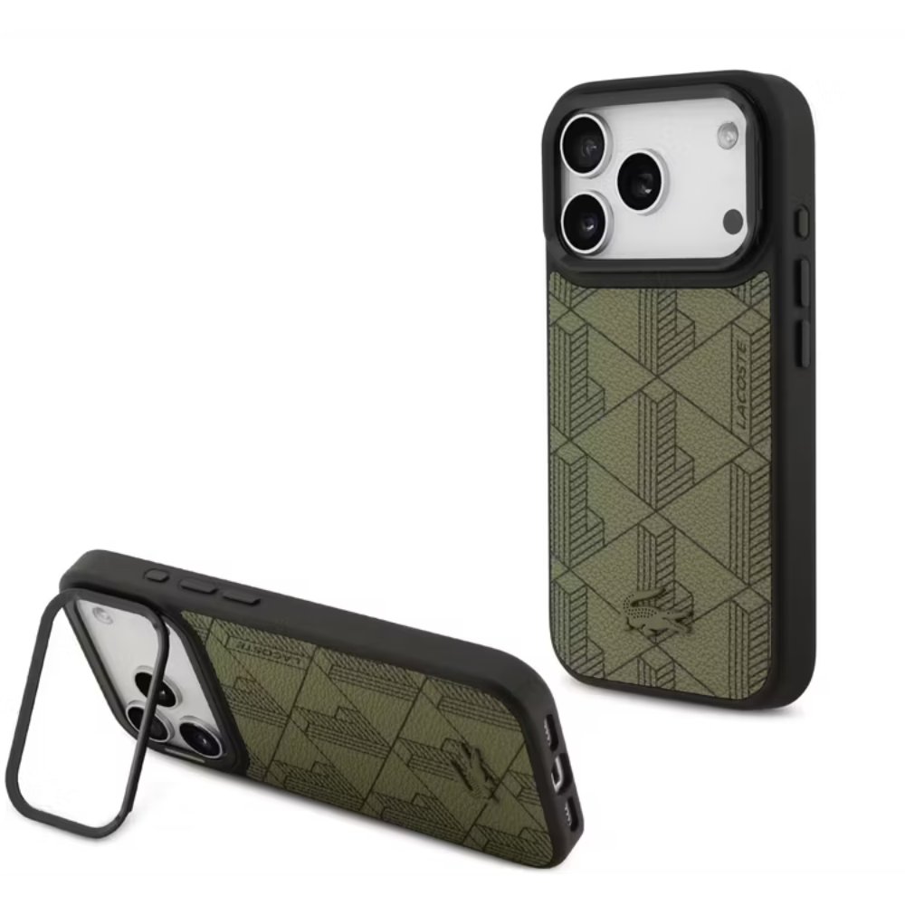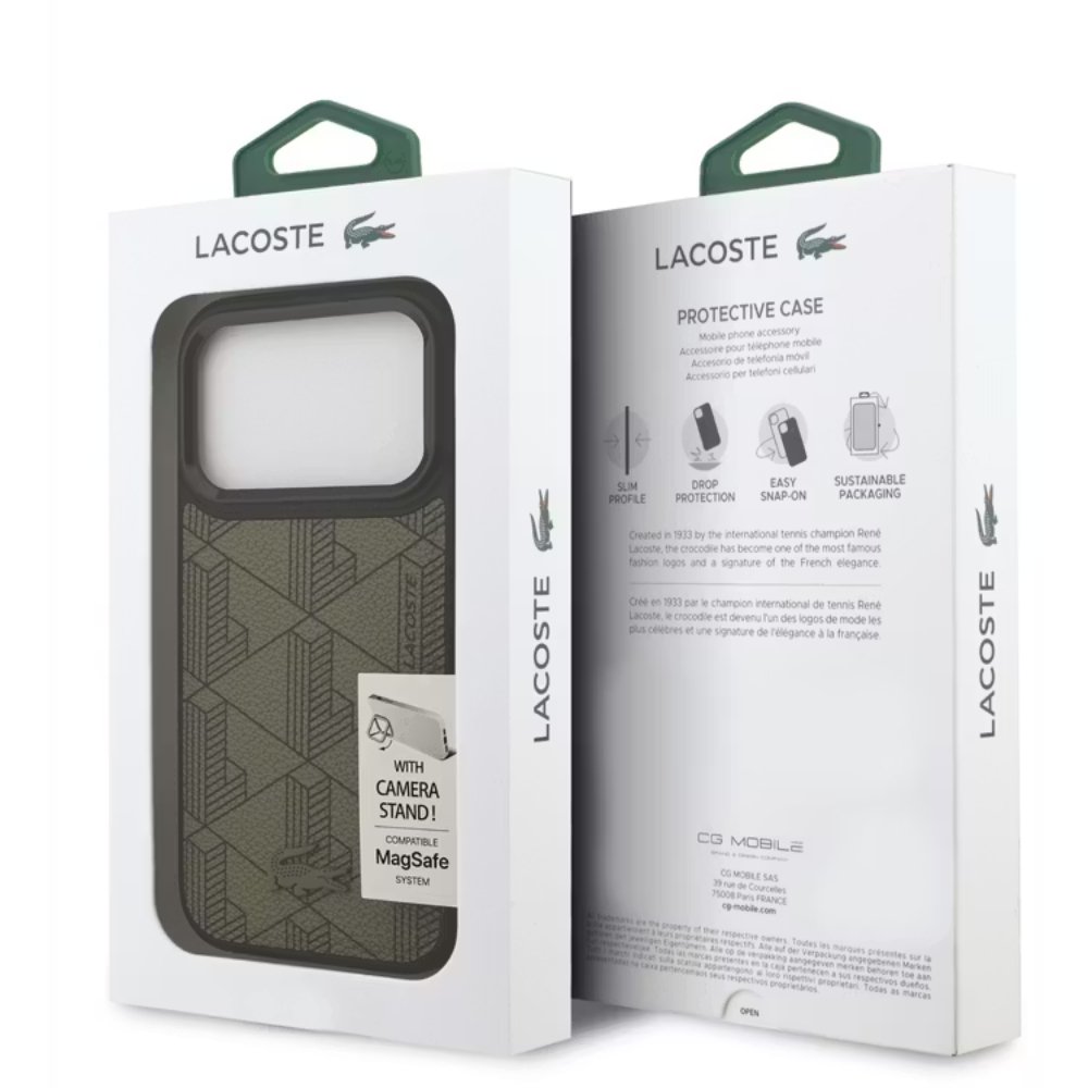 LACOSTE Lacoste MagSafe PU Leather Case with Nomogramme Logo & Camera Stand for iPhone 17 Pro Max Slim Profile Drop Protection Easy Snap On Design Green