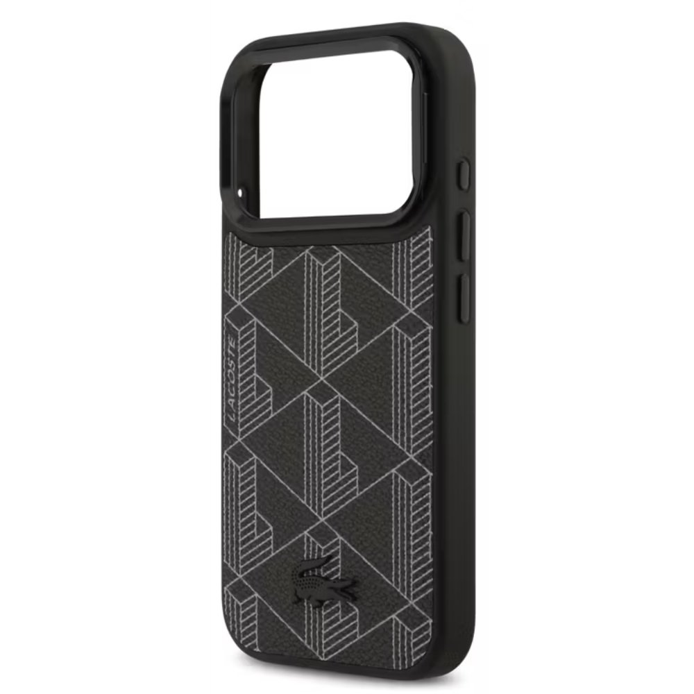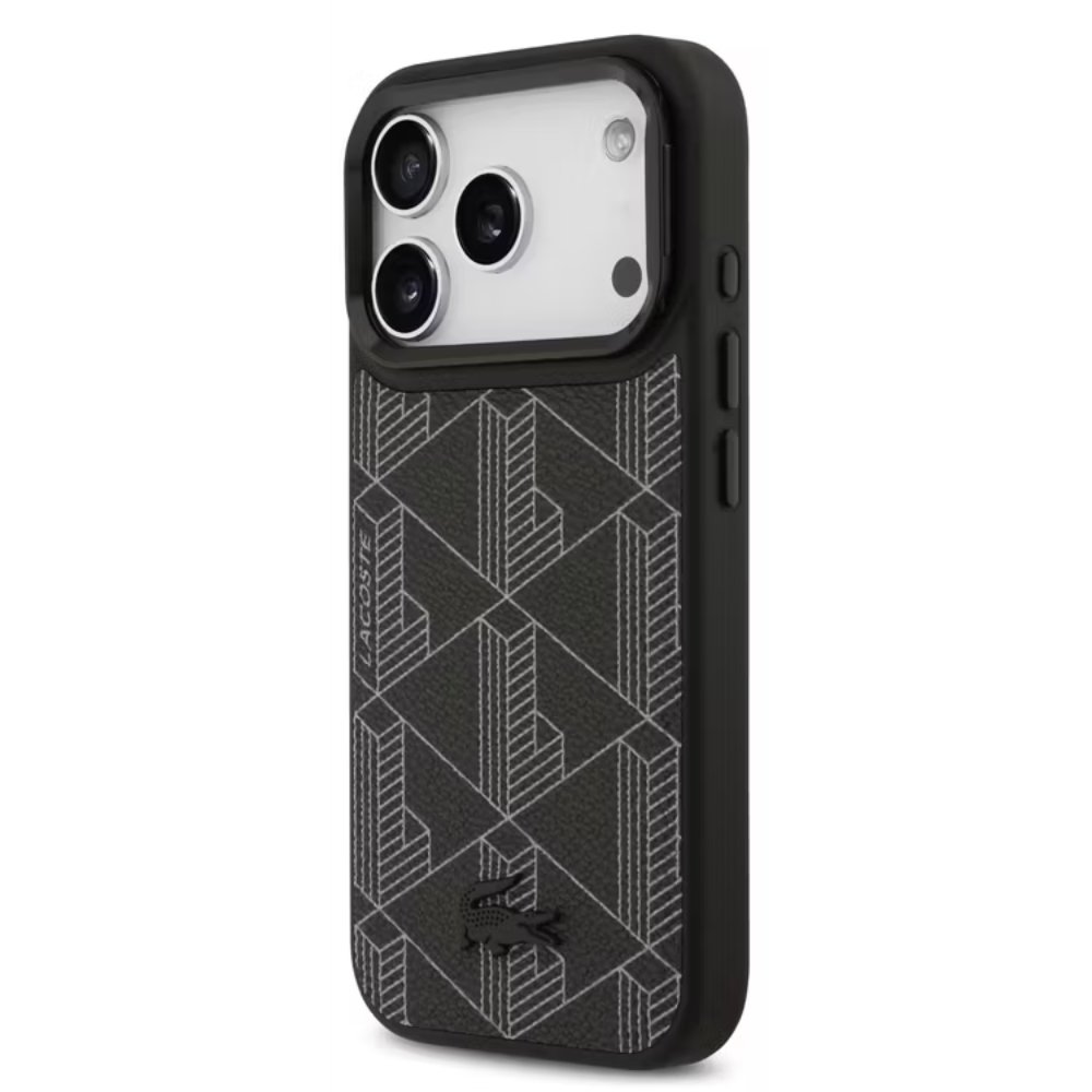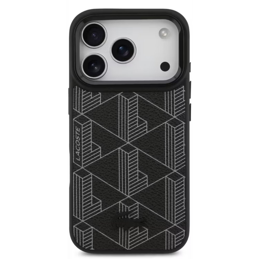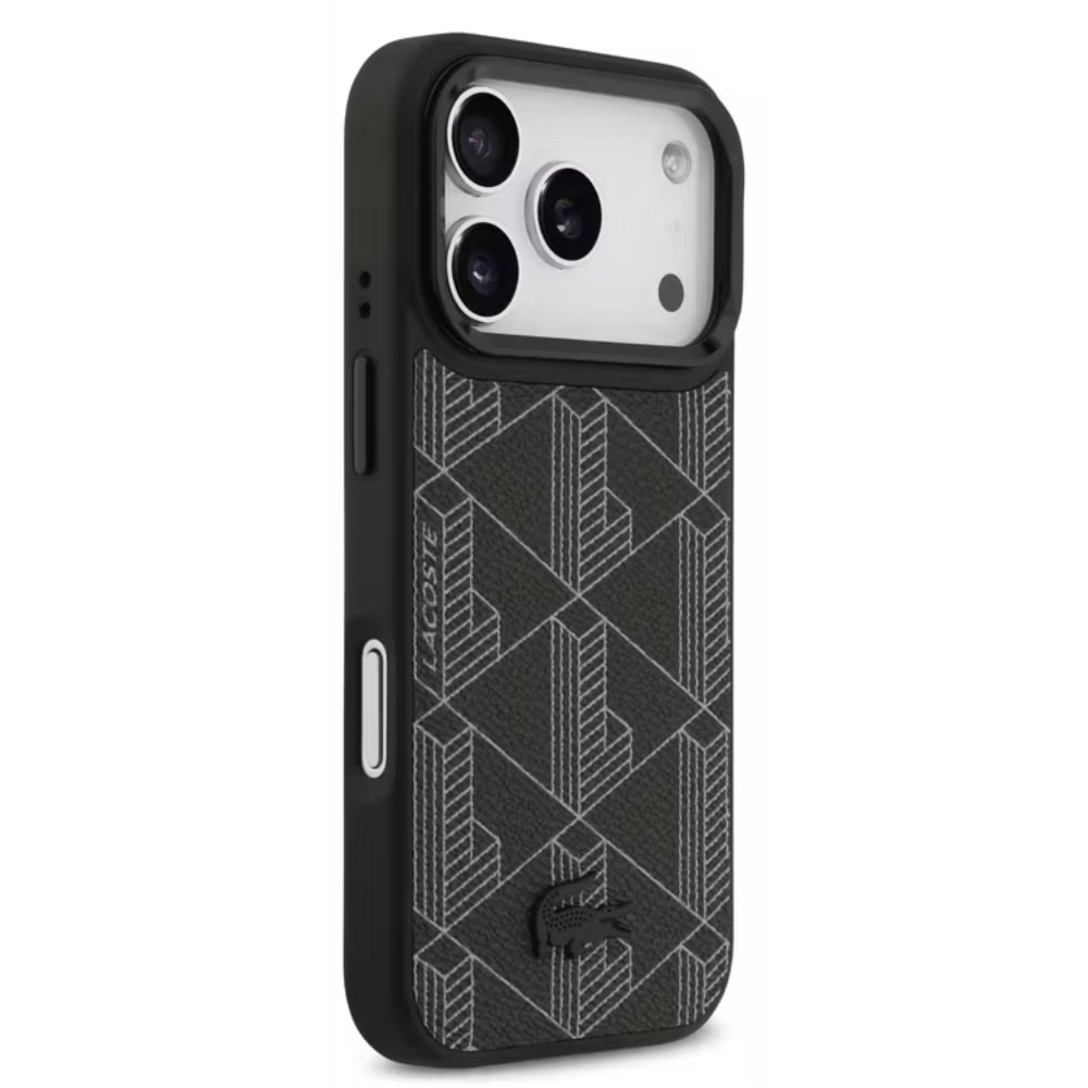 Lacoste MagSafe PU Leather Case with Nomogramme Logo & Camera Stand for iPhone 17 Pro Max Slim Profile Sustainable Packaging Drop Protection Easy Snap On Design Black