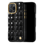 - Stylish metal grid phone case for iPhone 16 Pro Max.