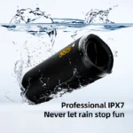 When you are partying with friends outdoors, the QCY SP7 Bluetooth Speaker – with fully-sealed cavity and hydrophobic coatings – is lPX7 splash proof so you don’ t have to worry about the party getting too wet and wild.